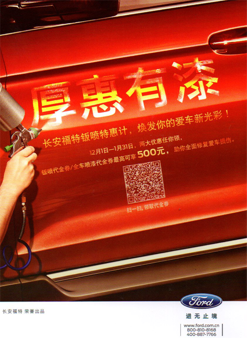 2、全車噴漆代金券:500元(全車噴漆業(yè)務(wù)消費(fèi)總額高于4000元)。