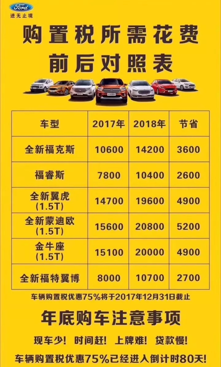 2017-2018購置稅費(fèi)用對(duì)比