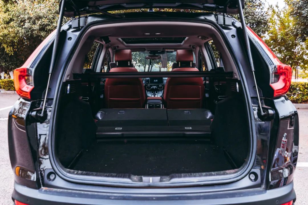 車內(nèi)的空間映入眼簾,寬敞兩個(gè)字足以形容,不需要多余的字眼,就是寬敞。前排的空間和視野很開闊,得益于SUV較高的底盤,駕駛視野對(duì)于行車更為安全。后排空間也是如此,以我自己舉例,身高176cm,膝蓋距離前排座椅兩拳多,即便坐的端正頭距離車頂也有一拳多空余,后排座椅可以放倒,進(jìn)一步提高后備廂的可利用空間,哪怕是在車?yán)锼挥X,這樣的空間也足夠,作為家用真的再合適不過了。