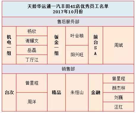 他們是天嬌大家庭中普普通通的一員,是他們的不懈努力和辛苦付出,支撐著天嬌華運(yùn)通一汽豐田4S店源源不斷的動(dòng)力,他們具備良好工作作風(fēng),只為給客戶一個(gè)好的服務(wù)。