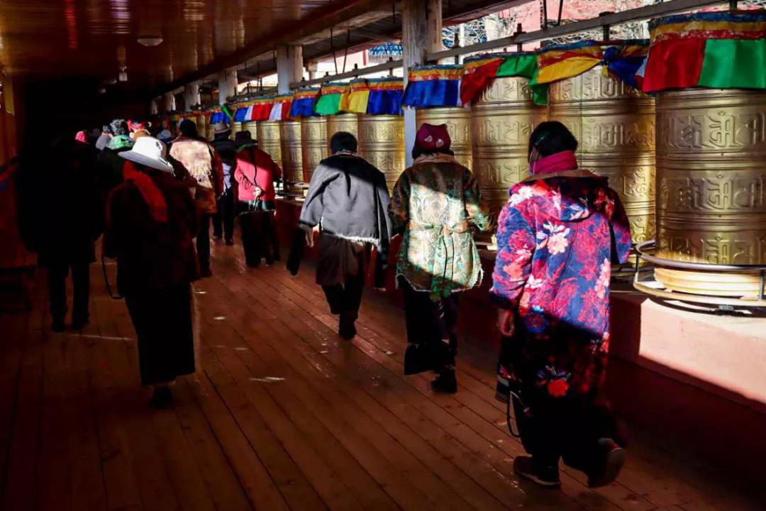 這里商鋪林立,各種商品琳瑯滿目,這里也成為來理塘必逛地之一。街道中最為醒目的便是轉經道。由順時針出發(fā),經筒也是順時針轉動。走完一圈,便算是認認真真的轉過一遭。